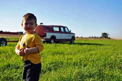 Lauren Ransom, from Four Ransoms and a Farm blog, shared with me these photos of her lil 8th generation farmer. Lauren says this lil guy gets excited every time he sees daddy coming his way in the combine.